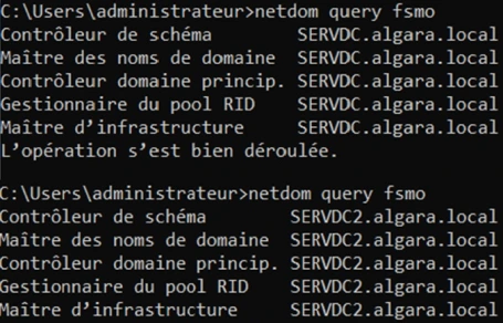 Ce procédé de migration permet de récupérer tout le contenu de l’Active Directory et des rôles FSMO d’un serveur A pour le transférer vers un serveur B.